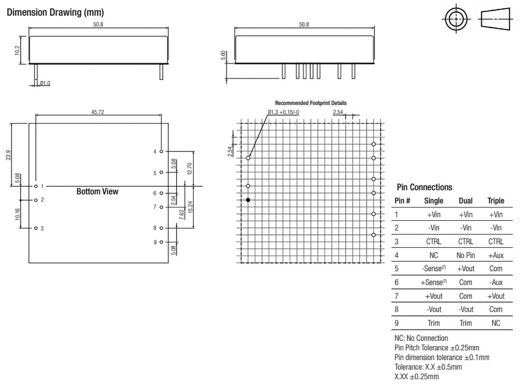 | RPA50S-483.3SW/P | αντί υπερφόρτωσης OPP, υπερφόρτωση OVP, έναντι βραχυκυκλώματος SCP, υπερθέρμανση OTP | 50 | RPA50S-W | 1/16 Brick | Σχ.20. | 2,25k | 1 | 18...75 | 3,3 | - | - | 15 | - | - | 90,5 | -40...54 | 33x22,8x9,5 | THT |