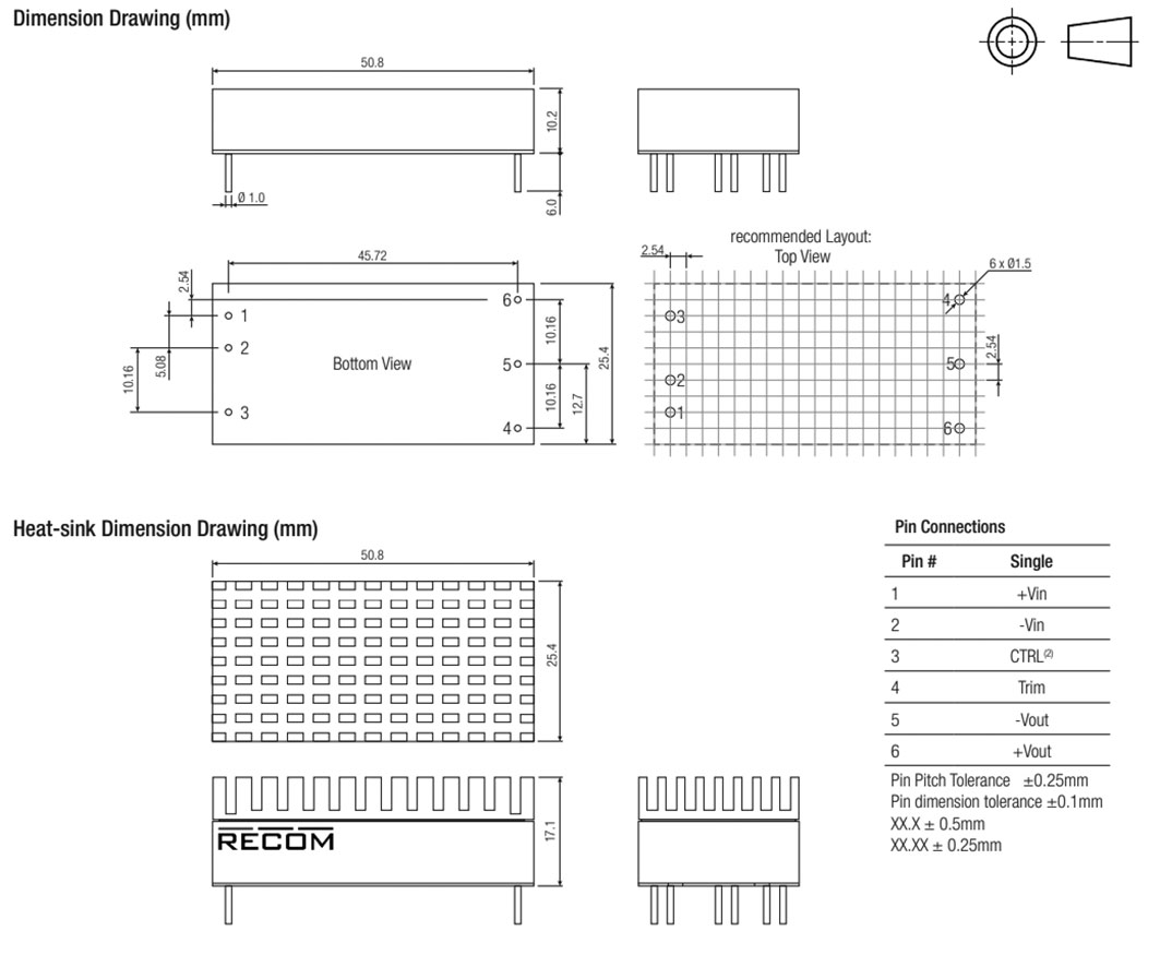 | RPA50S-4812SW/P | αντί υπερφόρτωσης OPP, υπερφόρτωση OVP, έναντι βραχυκυκλώματος SCP, υπερθέρμανση OTP | 50 | RPA50S-W | 1/16 Brick | Σχ.20. | 2,25k | 1 | 18...75 | 12 | - | - | 4,2 | - | - | 89 | -40...54 | 33x22,8x9,5 | THT |