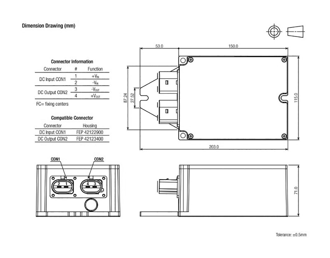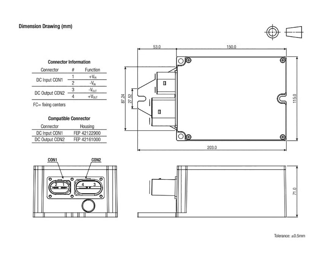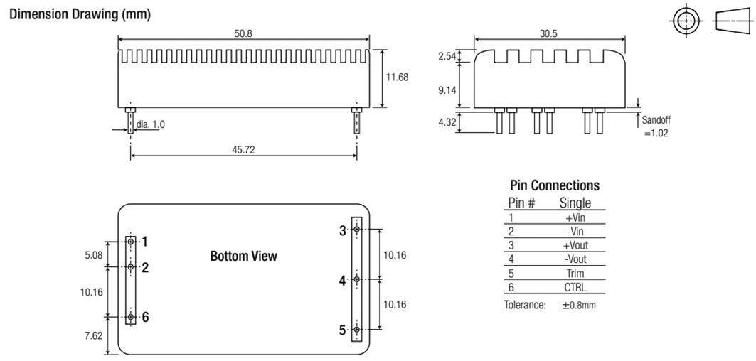 | RMOD600-80-13SEW | υπερέντασης OCP, έναντι βραχυκυκλώματος SCP, υπερθέρμανση OTP | 600 | RMOD600-EW | - | Σχ.5. | 2,5k | 1 | 33,6...125 | 13 | - | - | 46,2 | - | - | 85 | -35...85 | 203x115x71 | Βιδωτά |