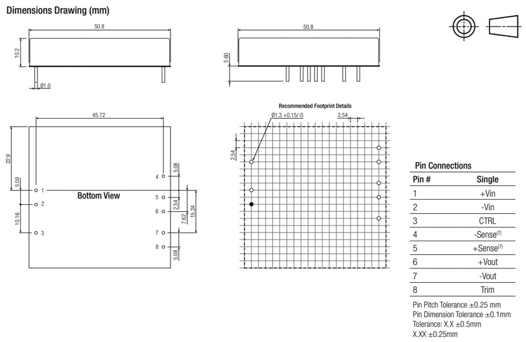 | RPA60-2424SFW/P | αντί υπερφόρτωσης OPP, υπερφόρτωση OVP, έναντι βραχυκυκλώματος SCP, υπερθέρμανση OTP | 60 | RPA60-FW | 2"x1" | Σχ.21. | 1,5k | 1 | 9...36 | 24 | - | - | 2,5 | - | - | 93 | -40...85 | 50,8x25,4x10,2 | THT |