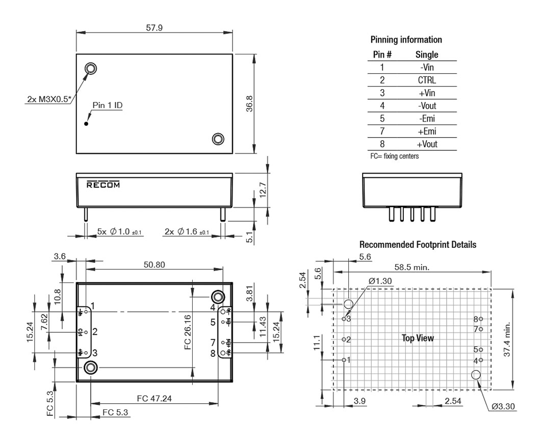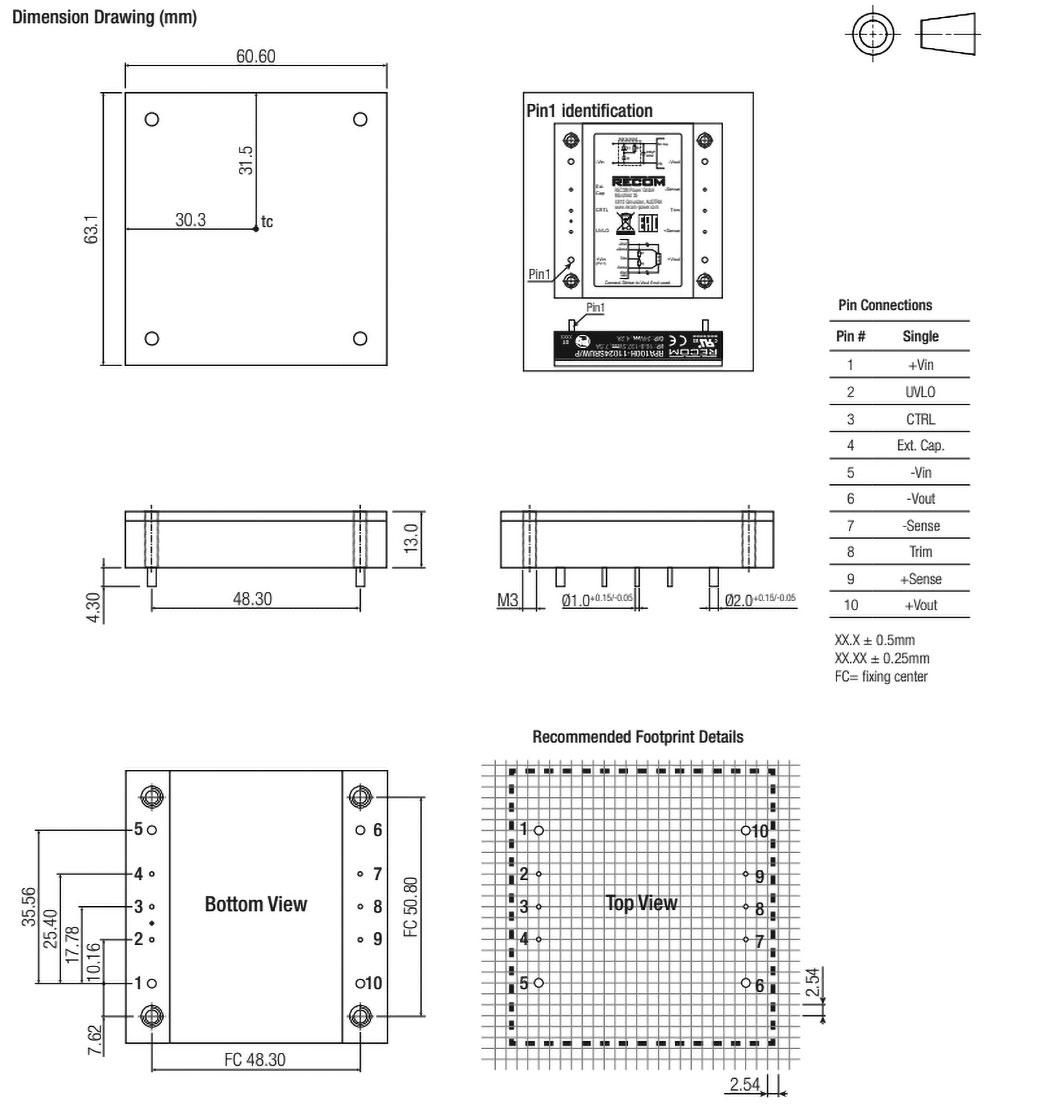 | RP100H-11048SRW/N | αντί υπερφόρτωσης OPP, υπερφόρτωση OVP, έναντι βραχυκυκλώματος SCP, υπερθέρμανση OTP | 100 | RP100H-RW | Half Brick | Σχ.6. | 3k | 1 | 43...160 | 48 | - | - | 2,1 | - | - | 90 | -40...85 | 61x57,9x12,7 | THT |