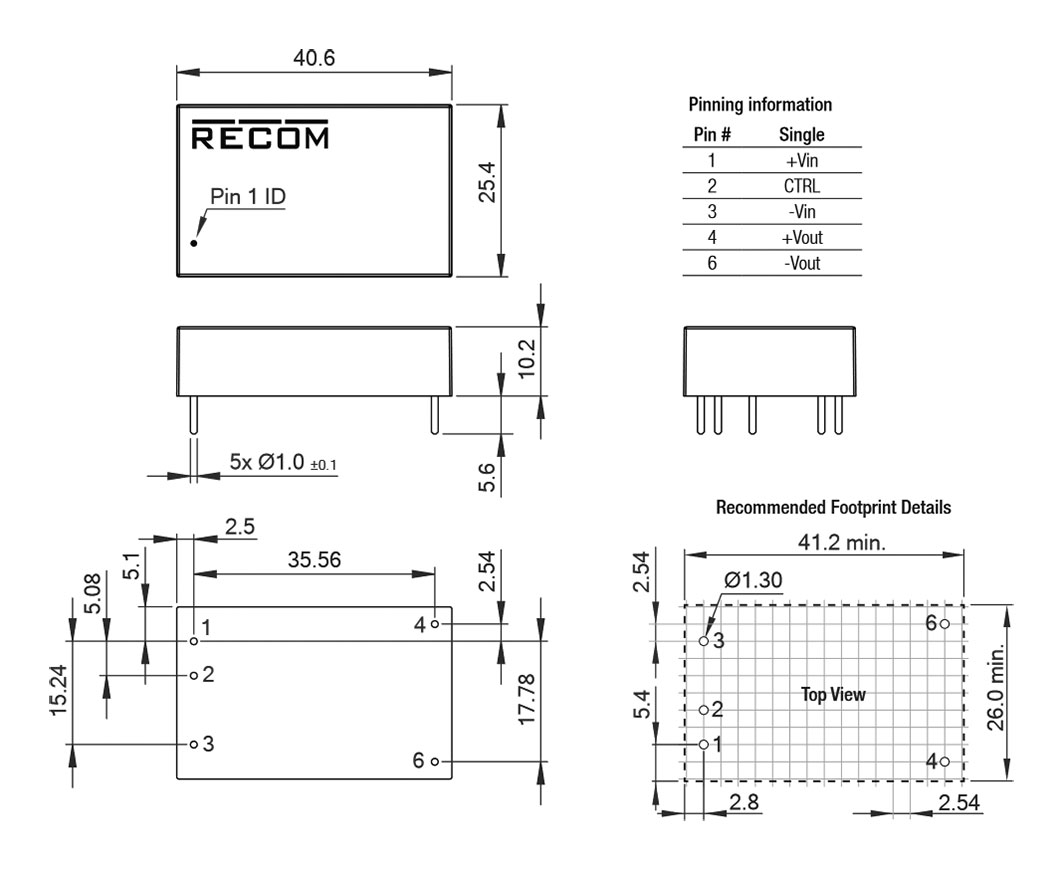 | RPA60-2405SFW/P | αντί υπερφόρτωσης OPP, υπερφόρτωση OVP, έναντι βραχυκυκλώματος SCP, υπερθέρμανση OTP | 60 | RPA60-FW | 2"x1" | Σχ.21. | 1,5k | 1 | 9...36 | 5 | - | - | 12 | - | - | 92 | -40...85 | 50,8x25,4x10,2 | THT |