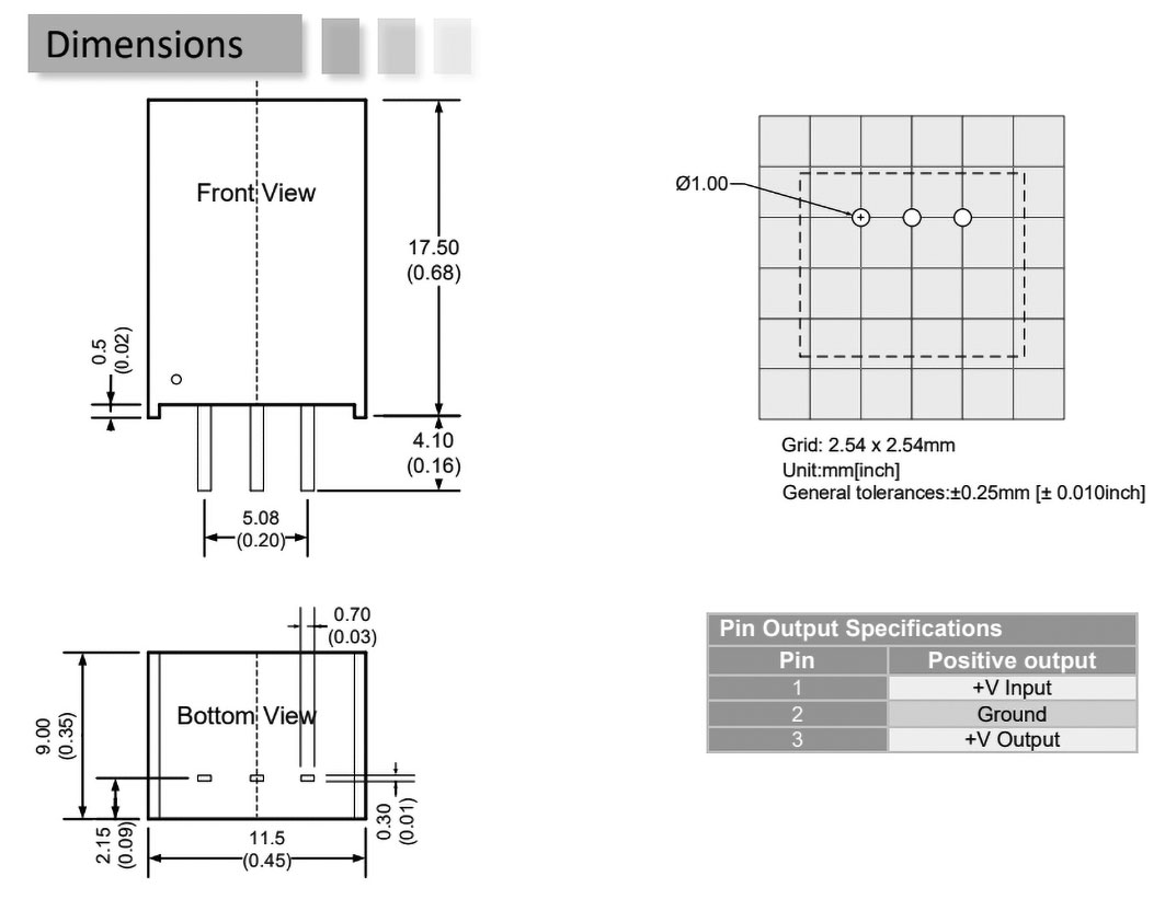 | Symbol | Dimensions | Power | Case | Input voltage | Output voltage | Output current | Body dim. | Efficiency | Number of outputs |
