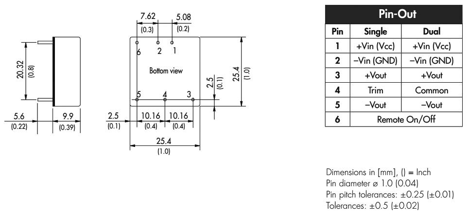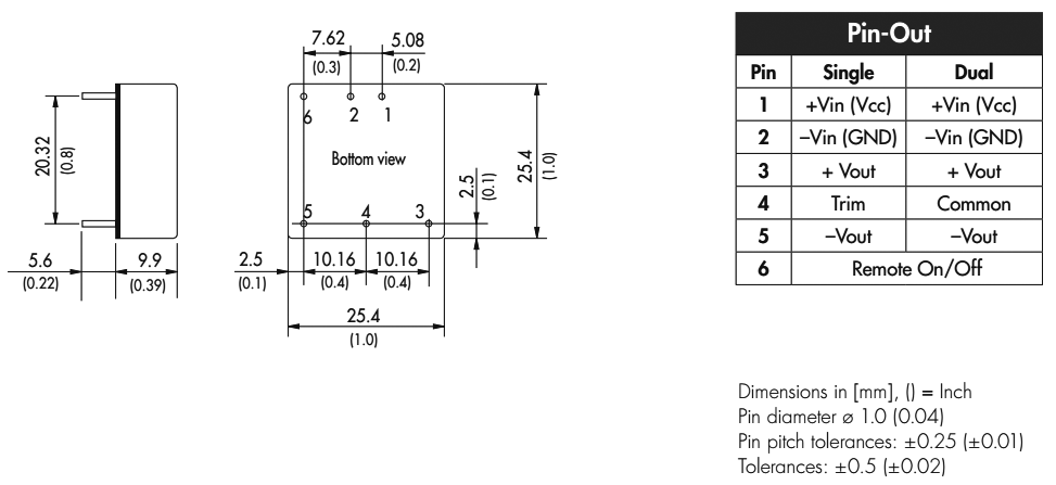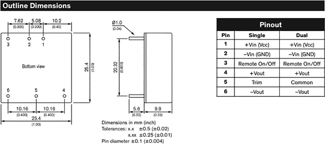 | THN20-1210 | 20 | 9...18 | 1 | 3.3 | 4500 | - | - | 86 | 25.4x25.4x9.9 |