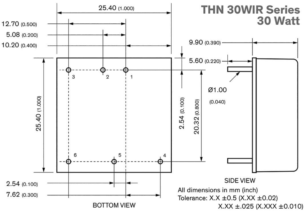 | THN30-1210 | 30 | 9...18 | 1 | 3.3 | 7000 | - | - | 86 | 25.4x25.4x9.9 |