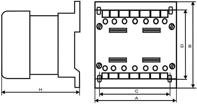 Symbol | Power | Primary voltage | Usec. 1 | Body dimensions | A | B | C | D | H |