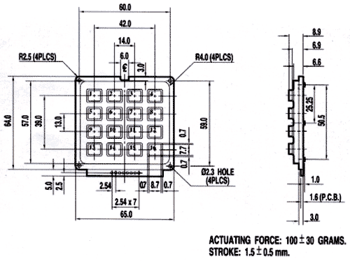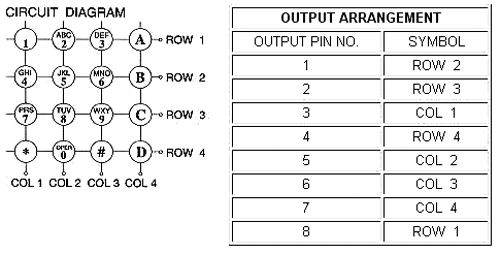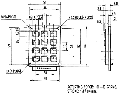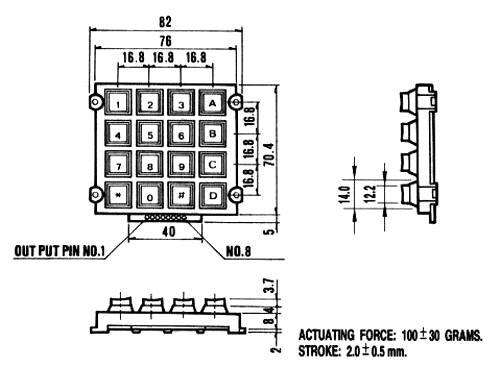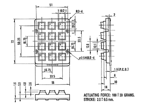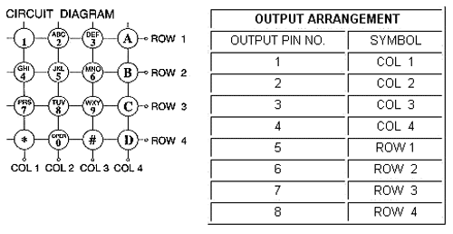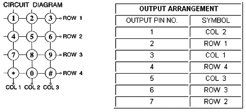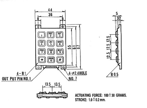 Symbol | Kind of keypad | Colour | Number of buttons | Key stroke | Ht. | Width |