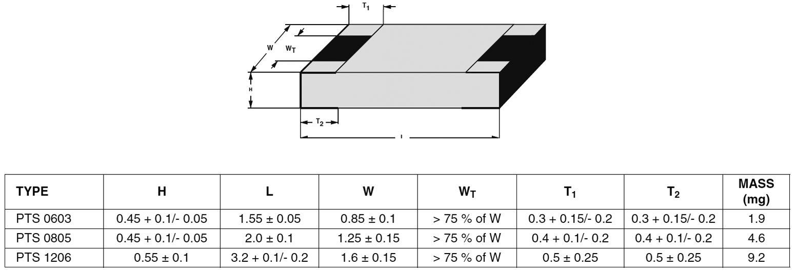 | PTS0603M1B100RP100 | 0603 | cl.B 0,3 % | Pt100 | 100 | Fig. 2. | 0.45x1.55x0.85 | 0.3 | reel |