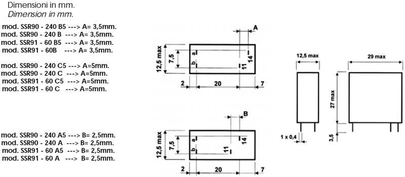 | SSR-91-60B5 | max. 60 | - | 2 | 5...10 | 12.5x29x30.5 | Fig. 3. | - | 3.5 | SSR9 |