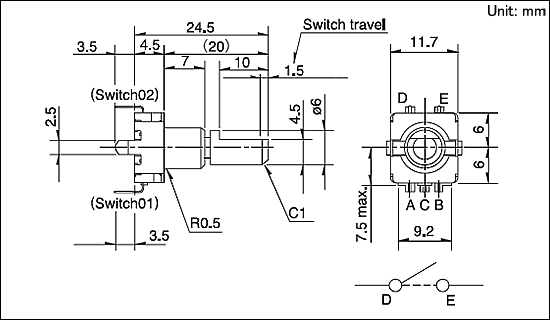 EC11B15242AE | -40...85 | 15 | 30 | dos señales A y B | 10 | 5 | 15000 ciclos | 13 | 6 | 1,5 | con botón | 0,5 | - | - | - | - |