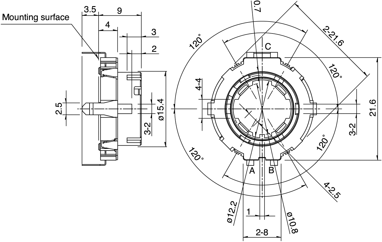 Símbolo | Tipo de codificador | Medidas | Montaje |