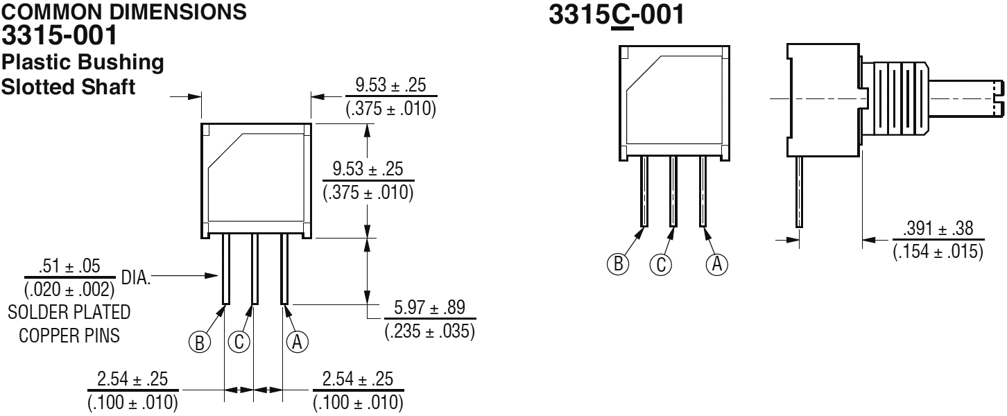 3315Y-001-016L | -40...125 | 16 | - | dos señales A y B | - | - | 100000 ciclos | 12,7 | 3,18 | - | - | - | - | - | - | 3315Y |